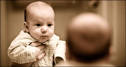 Teaching Most people look out for number one, themselves, which makes it strange to think that there was ever a time when we had no concept of 'me'. A simple study dating from the early 70s suggests that before the age of around two years old we can't recognize ourselves in the mirror. Because of this study, and the many variations that have followed, some claim that it isn't until our second birthday that our self-concept emerges. A smudge of rouge on the nose In 1972 Beulah Amsterdam from the University of North Carolina published a study that has kicked-off decades of research on self-recognition (Amsterdam, 1972). The study's procedure was simple. Infants between the ages of 6 and 24 months were placed in front of a mirror after a spot of rouge had been surreptitiously put on their noses. Then their mothers pointed to the reflection in the mirror and asked the child: "Who's that?". Researchers than watched infants' behavior. After testing 88 infants Amsterdam could only obtain reliable data on 16 of them - infants will be infants and many didn't want to play. From these 16 infants Amsterdam found three categories of response: