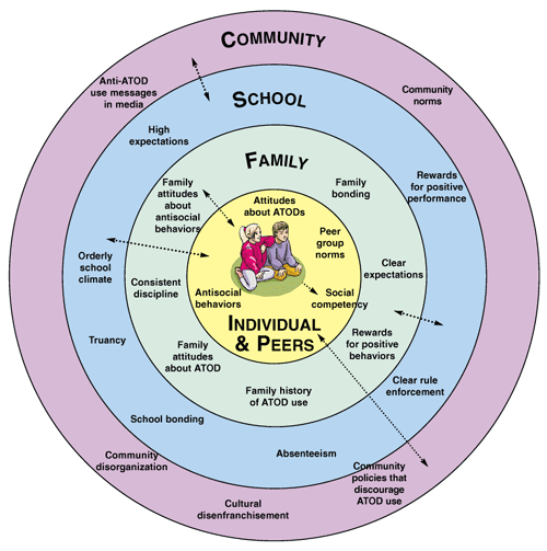 This model is actually a developmental model of human development. As peresons age and experience the world, the different concentric circles of influence begin to have an impact on the development of the person. When we work with people we often can implement change in a persons well-being by implementing change in one of the outer rings. So, we combine theories of human development (such as Erikson) with this theory to help us understand where someone is at. Assessment Lesson 5 Quiz