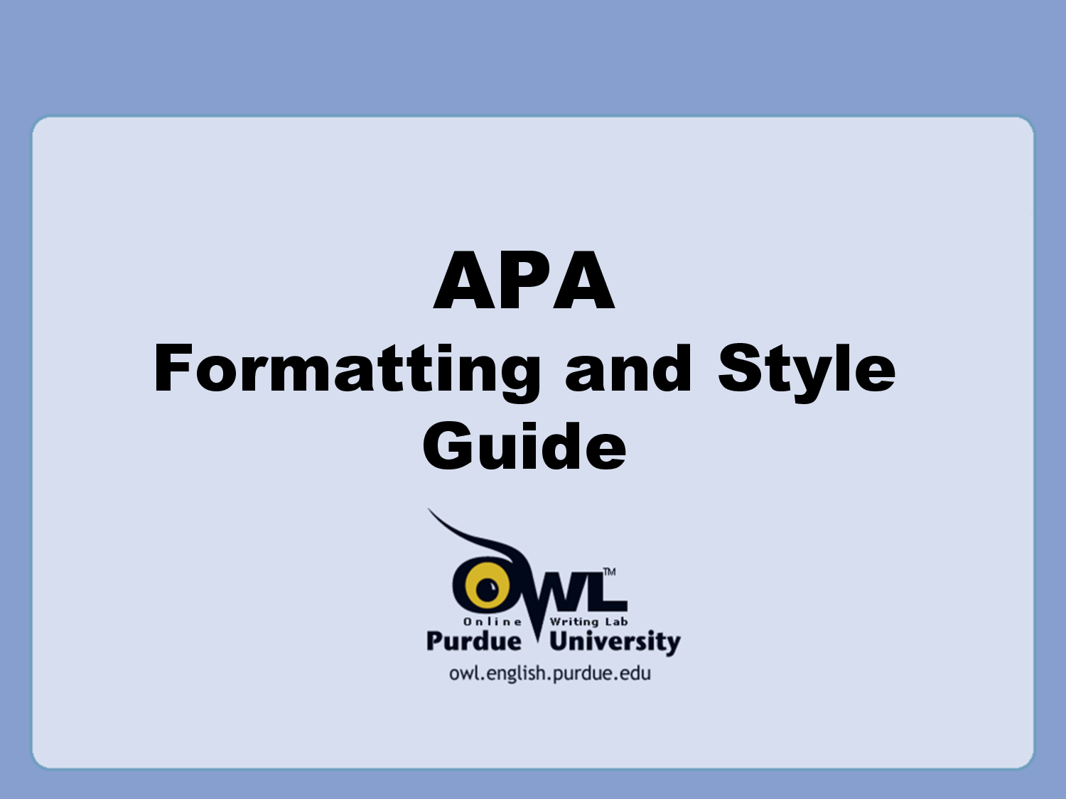When we touch on the Research R in this lesson you will encounter a type of article you will have to absorb (peer reviewed articles) that are NOT written for YOU...they are written for other professionals in the field. Click HERE to read an article on how to TEACH reading persistence! Writing Another skill that is actually vital in the field of Social Sciences is writing. Many people come to KVCC with a variety of writing skills, but the kind of writing that is expected in the workplace and in high school is very different than the kind of writing we require in the program. In this lesson I want to introduce you to a writing style that is represented by the professional writing requirements of the American Psychological Association (APA). The style is simply known as APA Style. Click on this image to visit the APA Style guides posted on Purdue University's Online Writing Lab website! The details of this style are beyond the scope of this class and will be covered in EACH of the classes in your program that require writing. Suffice to say that APA Style mandates that you format your papers in a particular manner. Details of APA Style that you will become familiar with include: