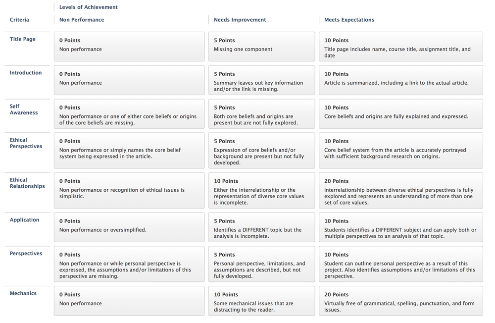 Grading Rubric The following criteria will be used to evaluate and grade your submission: