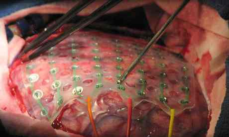 Electrodes placed on the surface of the cortex can be used to stimulate the brain of a conscious patient or record its activity. Photograph: Eric C. Leuthardt