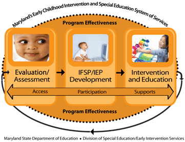 A comprehensive assessment process to determine if a child meets the criteria to be eligible for early intervention or early childhood special education services. |