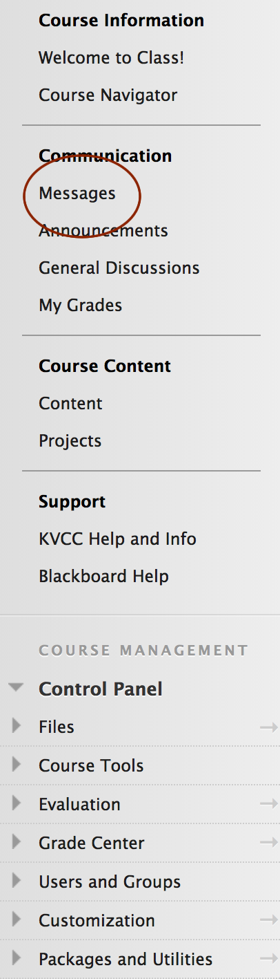 Messages Messages is a special email that exists within the course itself. To access this email you have to log into the course and click on the Messages tool link. From that point on it works pretty much like any email.